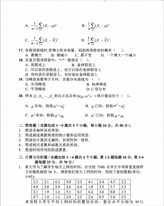 2012年中央财经大学432统计学考研真题