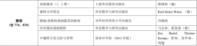 一、对外经济贸易大学德语语言文学专业考研考试科目、参考书目、复试分数线