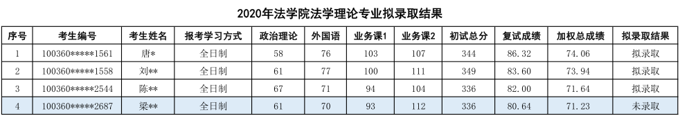 四、对外经济贸易大学法学理论专业考研复试研究生录取名单(2020级)