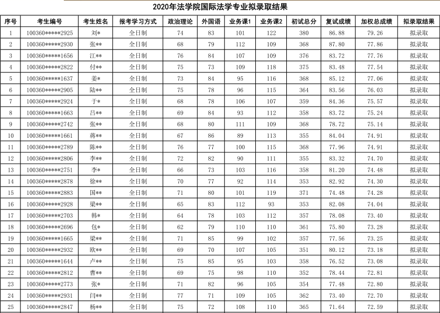 四、对外经济贸易大学国际法学专业考研复试研究生录取名单(2020级)