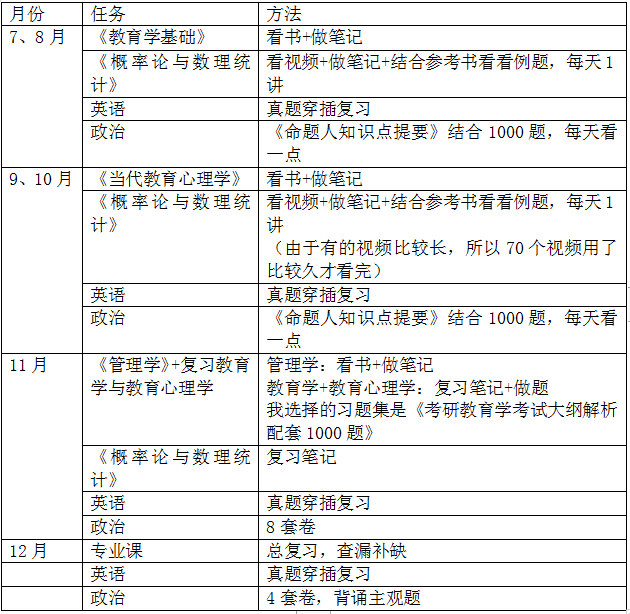 首先,教育学的专业课只有一门,满分300分,涉及到四本参考书的内容,题型有名词解释,选择题,简单题,计算题和论述题。论述题有两道,每道50分,一共100分。由此可以看出,教研院的初试考卷中,题型多样,客观题与主观题都有,注重考查基础的同时也涉及到论述与拓展。总体感觉是只要认真看了书,就会做。这里特别提示一下,要准确地背《概率论与数理统计》的公式,哪种分布用哪种检验公式一定要背准确,由于背错公式丢失了20分的悲剧学姐在此。