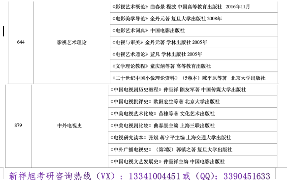 关于进度:我大概从六月底开始开始看专业课的书,相对较晚,如果是跨专业的同学可以早一点开始。整个暑假看完十多本参考书(附上参考书的所有书目),参考书的重要性占比,从历年真题来看,644影视艺术理论这门《影视艺术概论》指最重要的,其余没什么重要性,879中外电视史的题目比较灵活,每本参考书都同等重要。外加往届学长学姐的经验贴中推荐的一些拓展书,都看完了。关于经验贴插个题外话,学弟学妹们可以充分利用现在互联网的便利上贴吧、知乎、考研帮等查找往届学长学姐的经验贴观看,认真看完帮助是很大的。到九月份我花了一个月时间整理出自己要背的笔记和历年真题解析后,进入十月份开始背诵资料,一直持续到考前。当然除了这些备考工作之外,例如论文、热点等都需要持续关注。另外十月份到十二月份我进行了几次专业课模拟写作考试,对于提升答题能力、答题思维等都是有很大帮助的,这也是很有必要的步骤,有条件可以找辅导课程或者专业课辅导老师帮助你练习和批改。推荐新祥旭一对一辅导,老师很负责认真,上课也比较仔细。