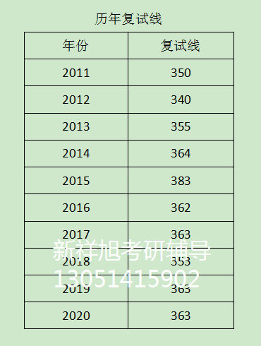 其次,从历年复试分数线来看,稳定在360分左右,相比其它学校并不高,但要注意到,该校的专业课分数也不是很高,这就是导致复试分数线不高的重要原因。