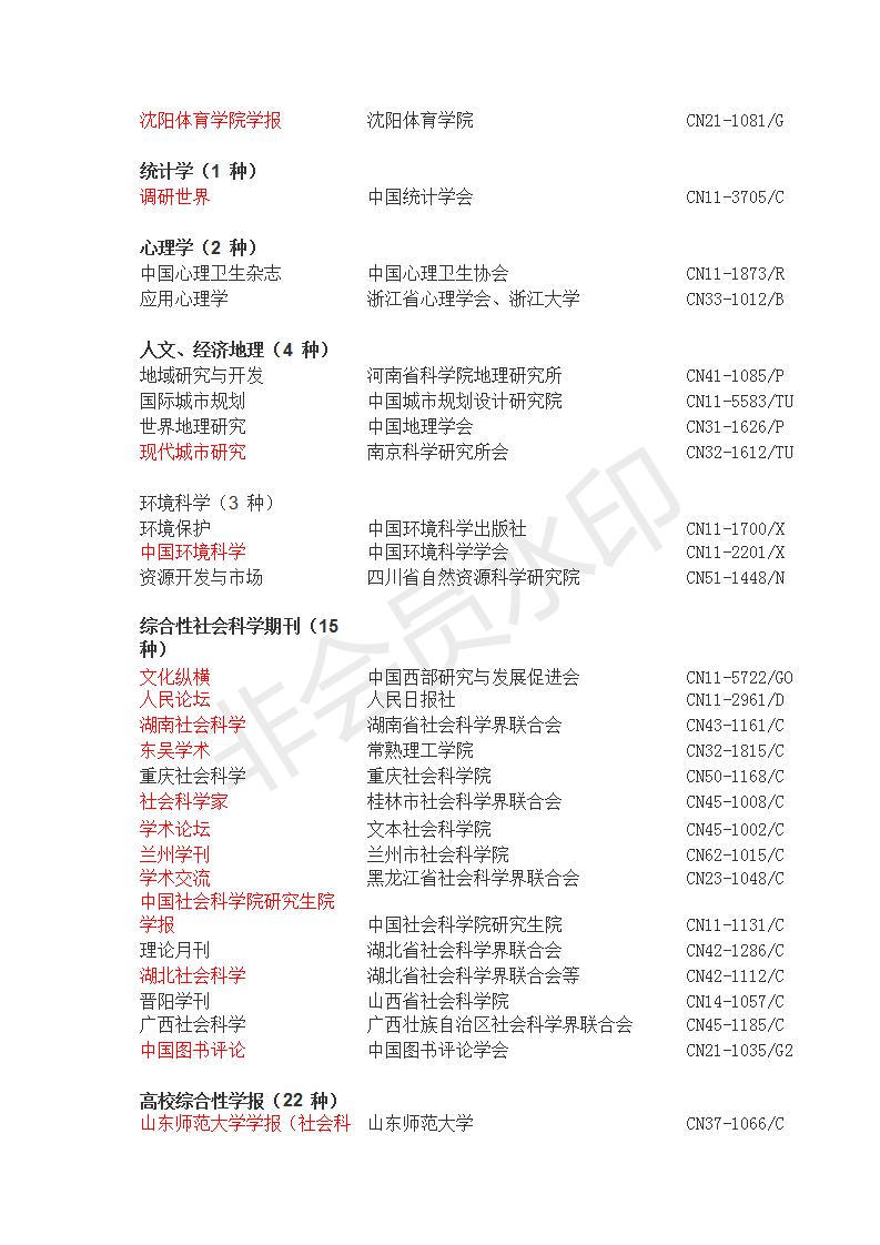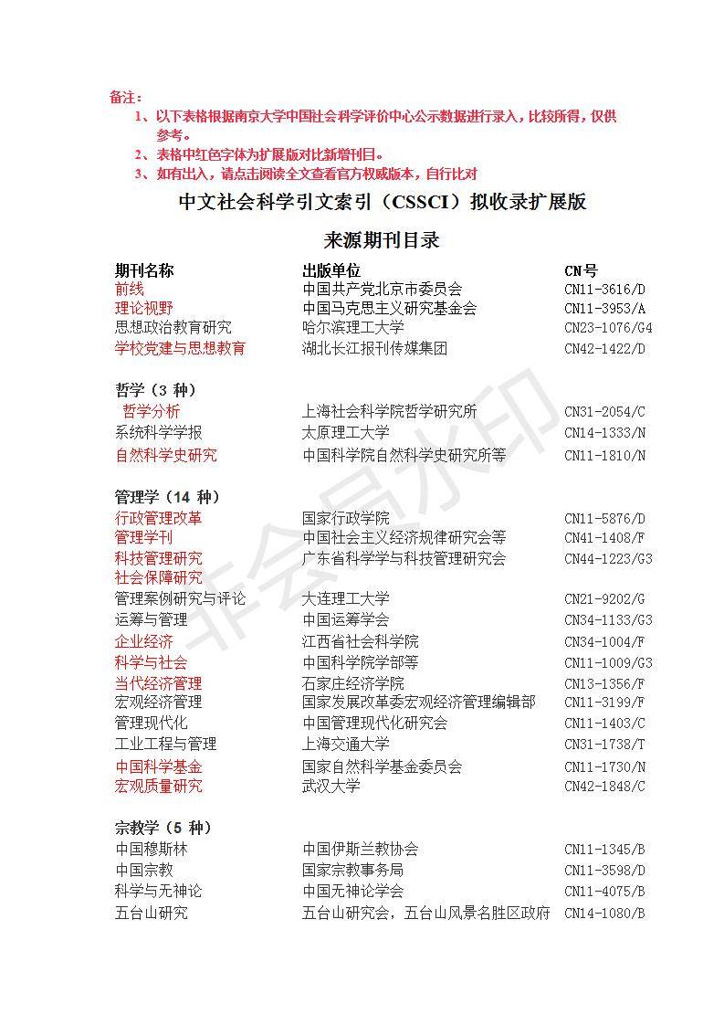 中文社会科学引文索引(CSSCI)拟收录扩展版
