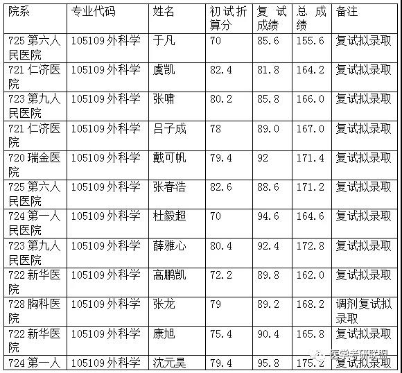上海交通大学外科学专硕2020年考试科目、报录比、录取名单、考研经验汇总
