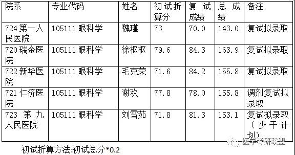 上海交通大学眼科学专硕2020年考试科目、报录比、录取名单、考研经验汇总