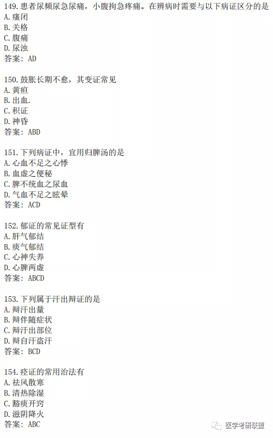 2021年全国硕士研究生招生考试中医综合307考研真题:X型题