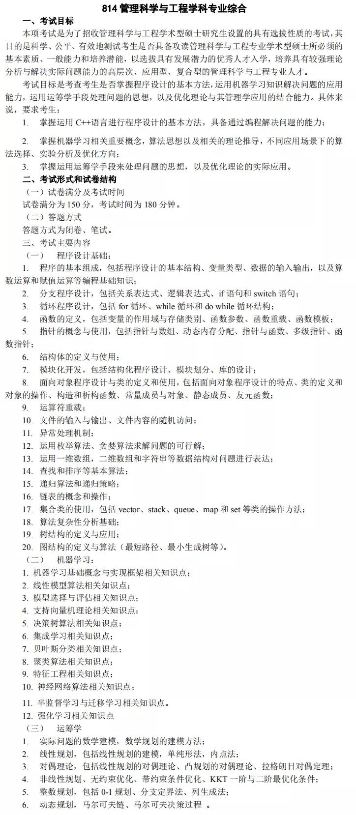 五、初试考试大纲