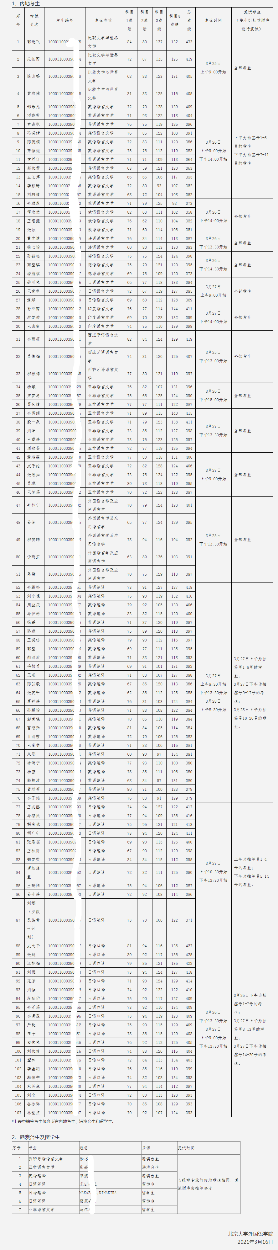 根据相关文件精神,北京大学外国语学院结合北京市疫情防控需要和我院实际情况,决定对参加我院2021年硕士研究生招生考试复试的考生采取网络远程方式进行考核。