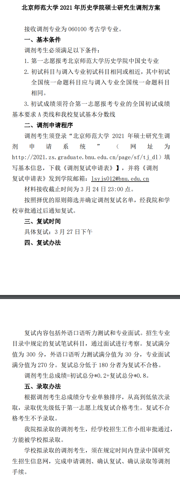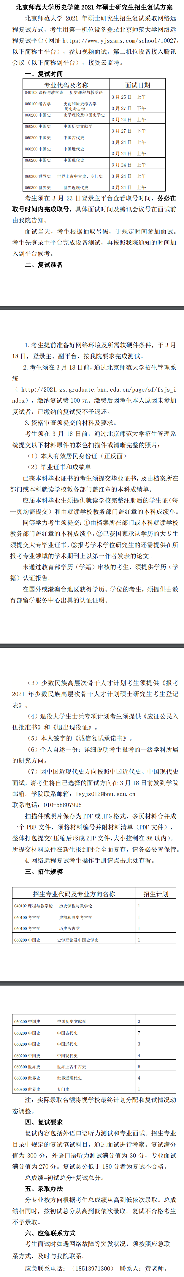 2021年北京师范大学历史动学院考研复试时间、复试名单等方案细则