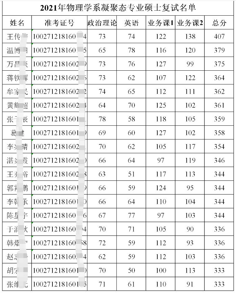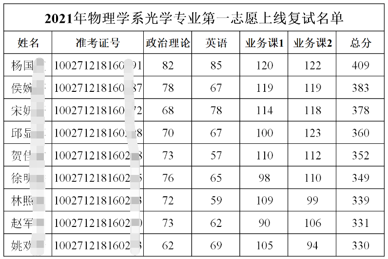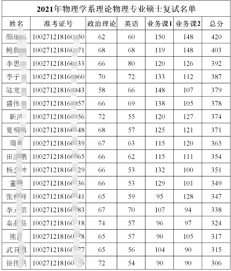按照择优的原则筛选并确定调剂复试名单,经物理学系和学校审批通过后通知复试。