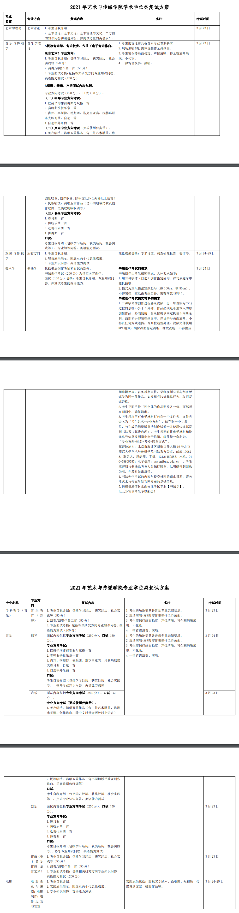 2021年北师大艺术与传媒学院硕士研究生考研复试方案及要求