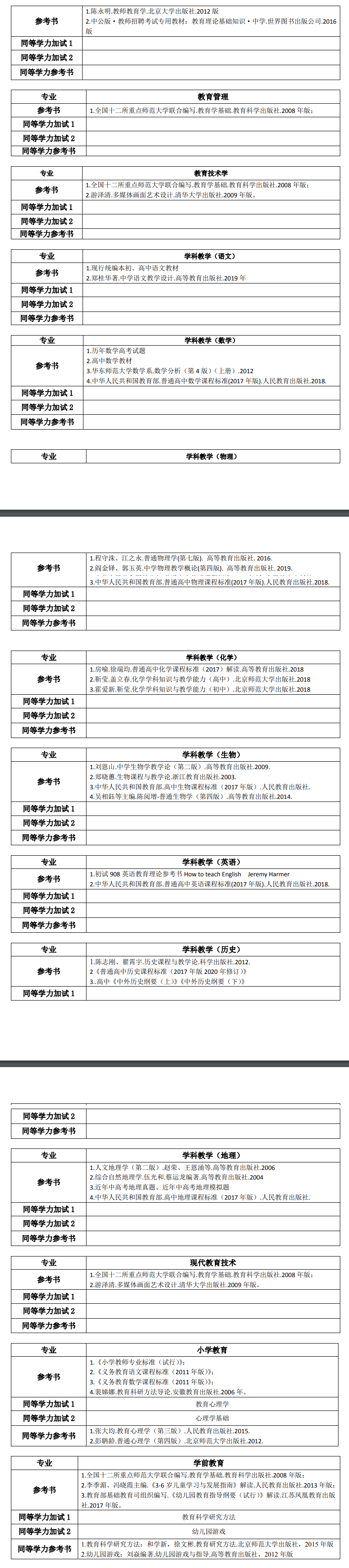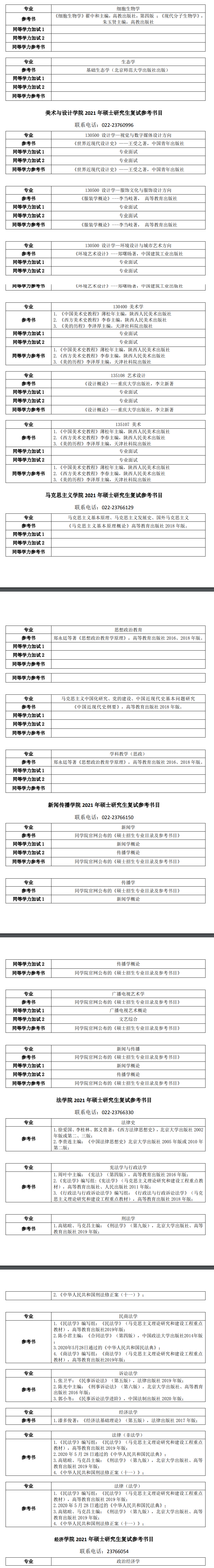 2021年天津师范大学各院系硕士研究生考研复试参考书目