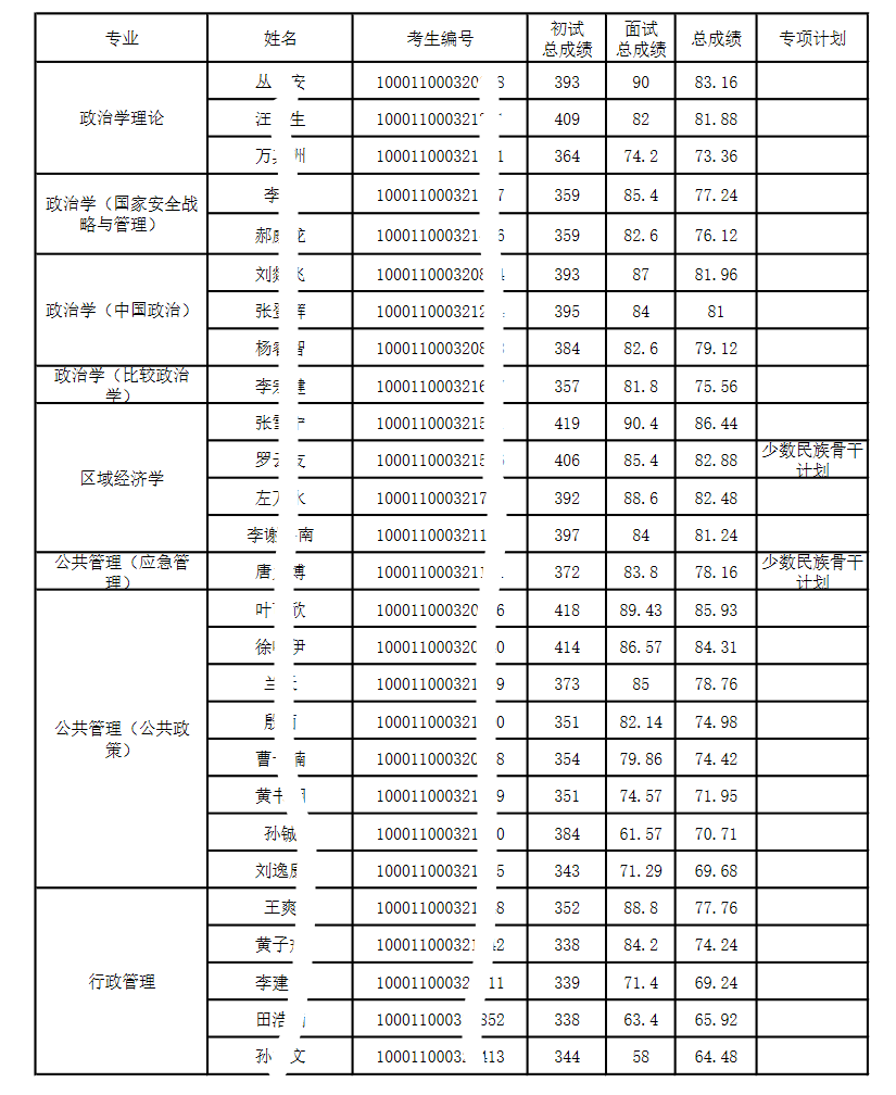 2021年北京大学政府管理学院硕士研究生复试总成绩(全国统考)