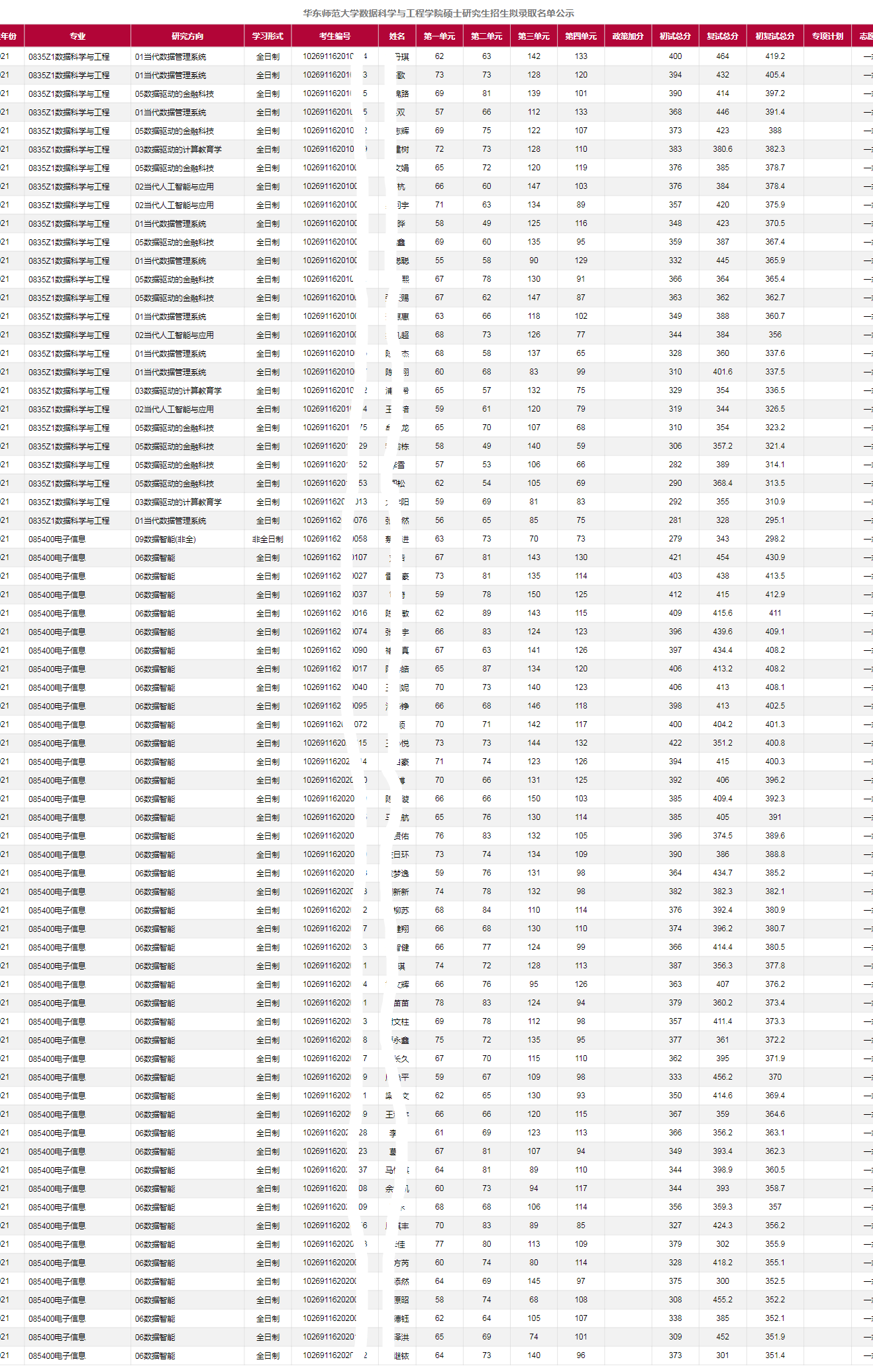 2021年华东师范大学数据科学与工程学院硕士研究生拟录取名单公示