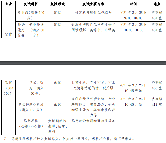 六、2021年同济大学软件学院复试细则