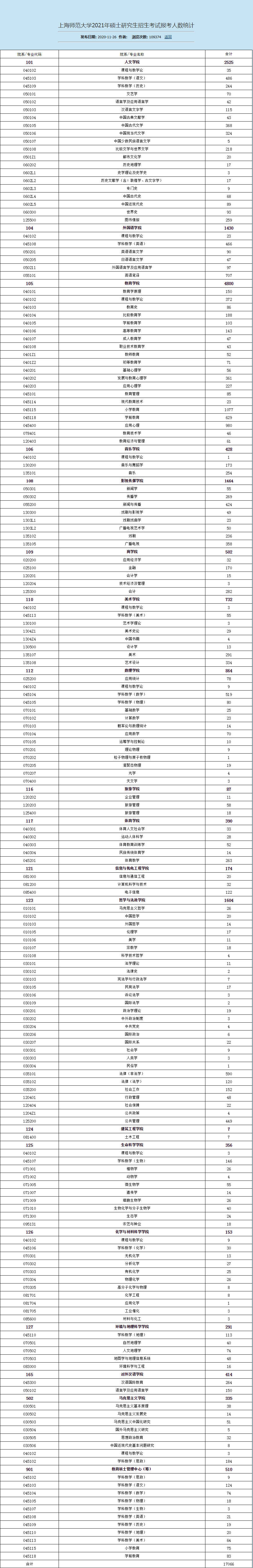 上海师范大学考研辅导班:2021年上海师范大学考研各专业报录比汇总