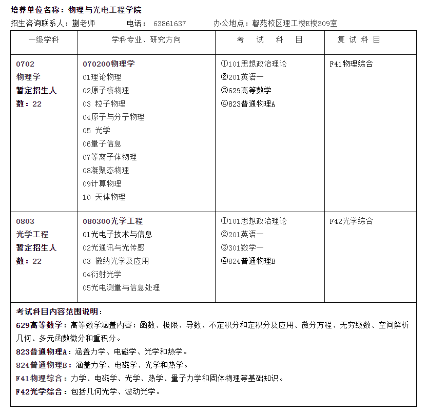 安徽大学考研辅导班:2022年安徽大学物理与光电工程学院学术学位考研招生人数、考试科目及专业课考试范围