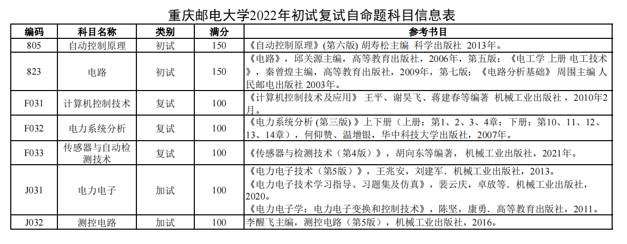 重庆邮电大学考研辅导班:2022年重庆邮电大学自动化学院硕士研究生考试科目及参考书