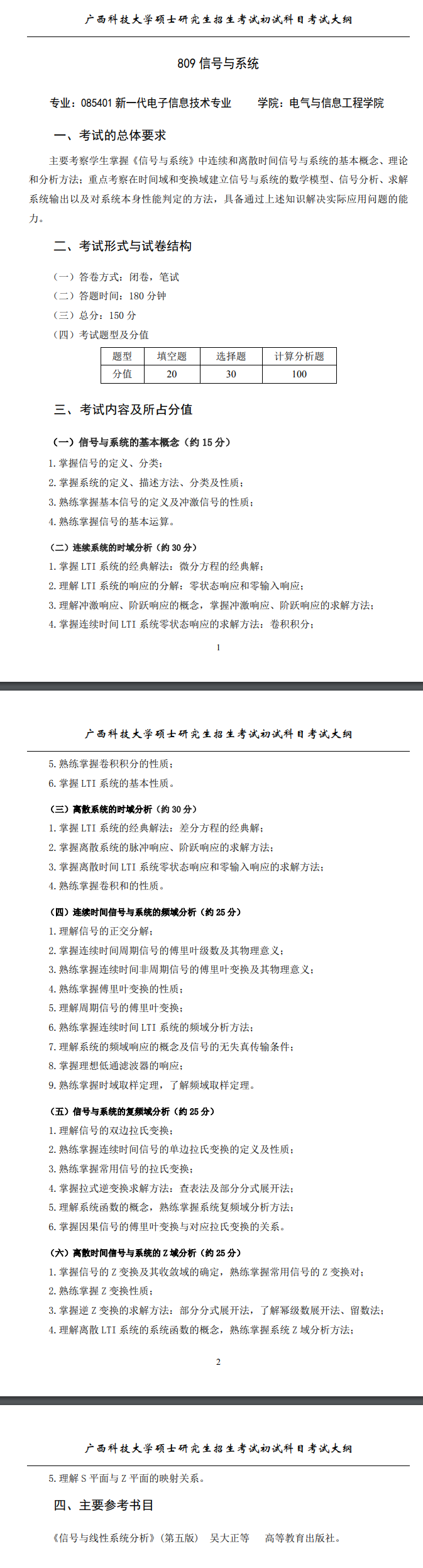 广西科技大学考研辅导班:2022年广西科技大学新一代电子信息技术专硕考研招生目录、809信号与系统考试大纲、参考书目