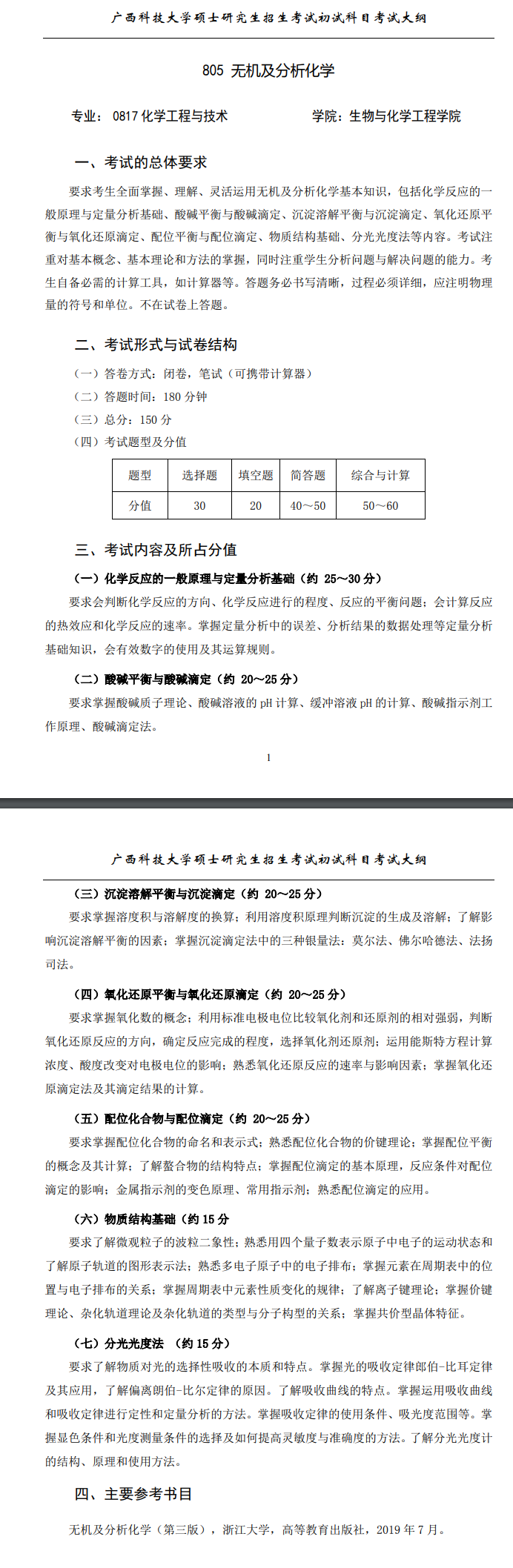 广西科技大学考研辅导班:2022年广西科技大学化学工程与技术考研招生目录、805考试大纲、参考书目