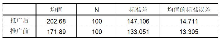 (2)给出广告传单推广后比推广前其用户长途电话的平均通话时间之差的95%的置信区间,并简要说明其含义。