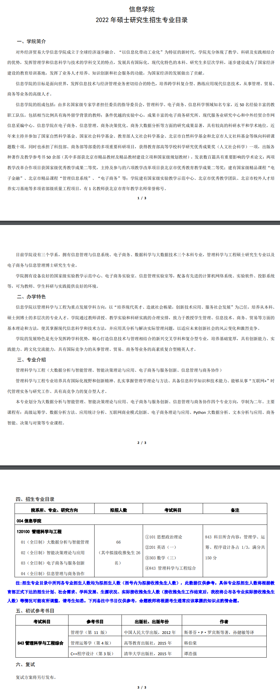 贸大考研辅导班:2022年对外经济贸易大学信息学院硕士研究生招生目录、招生人数、参考书公布
