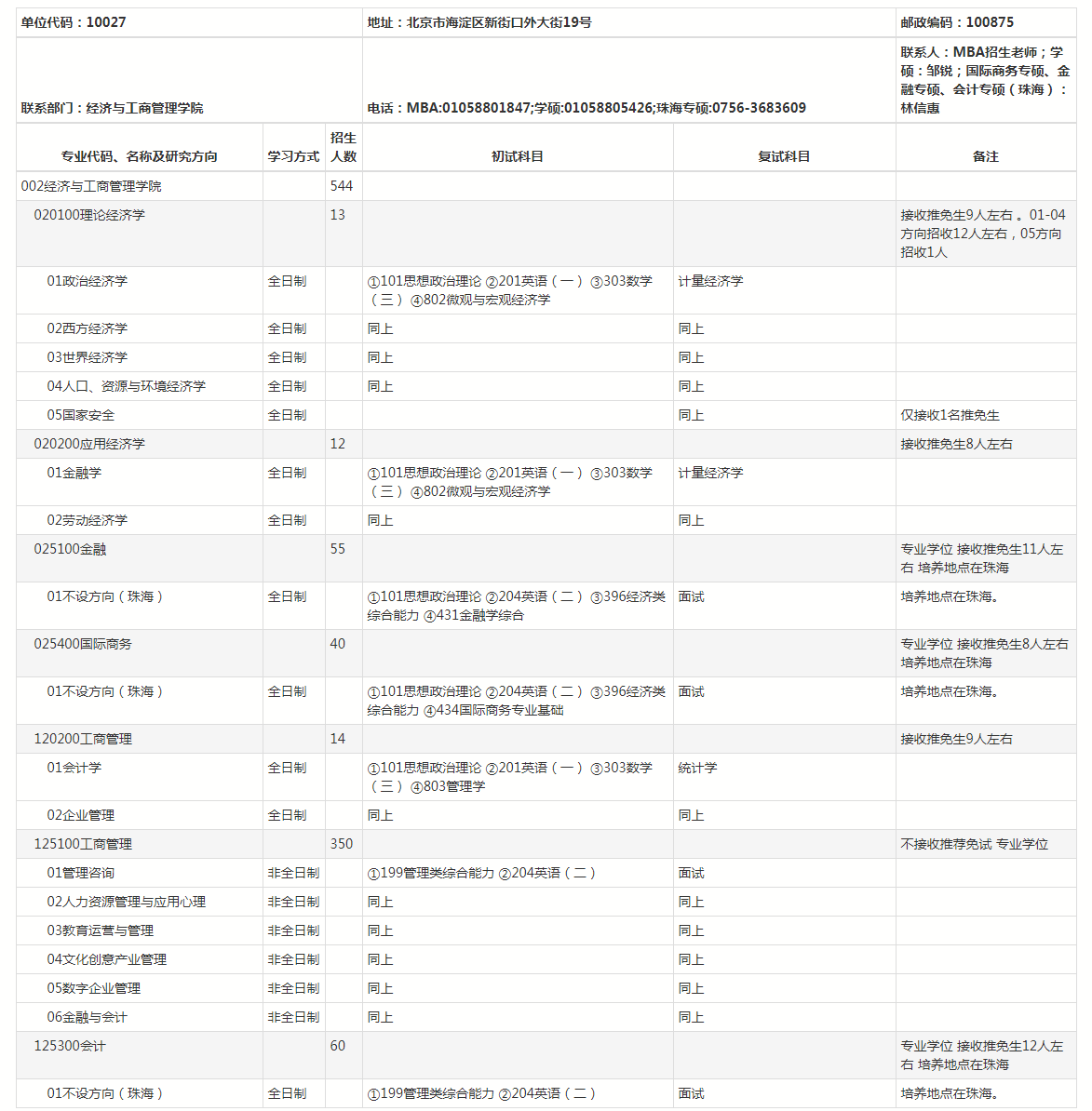 北师大考研辅导班:2022年北京师范大学经济与工商管理学院硕士研究生招生专业、招生人数、考试科目公布