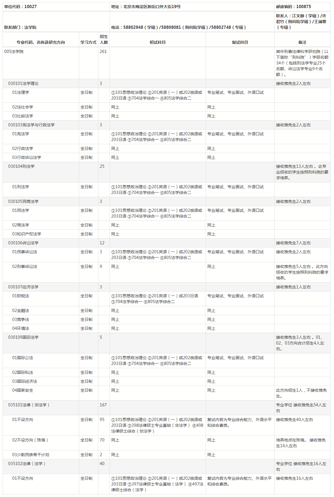北师大考研辅导班:2022年北京师范大学法学院硕士研究生招生专业、招生人数、考试科目公布
