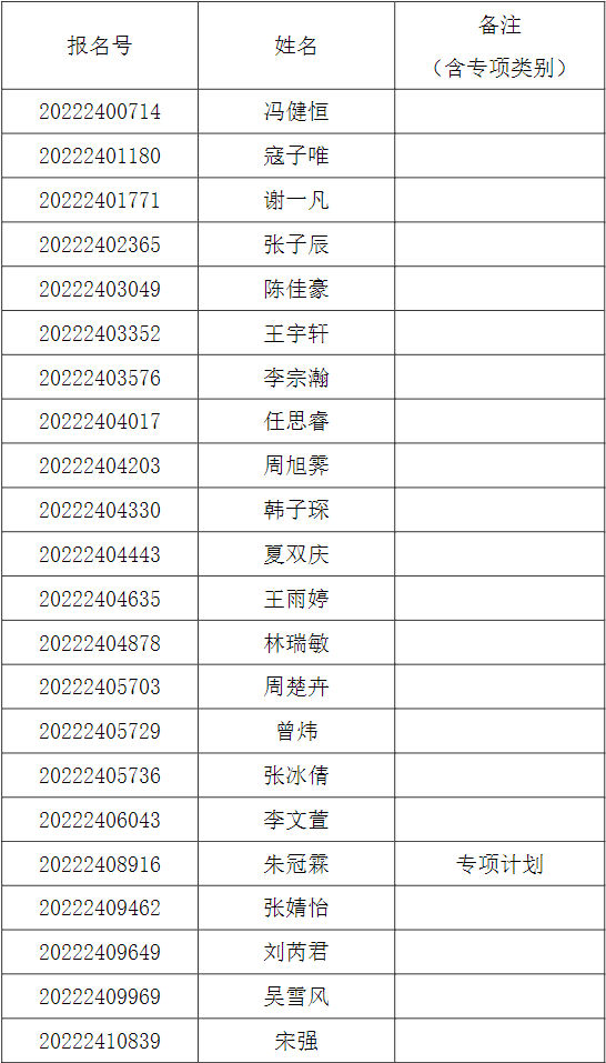 备注:以上名单中免试推荐资格和特殊计划资格均需后续进一步确认。