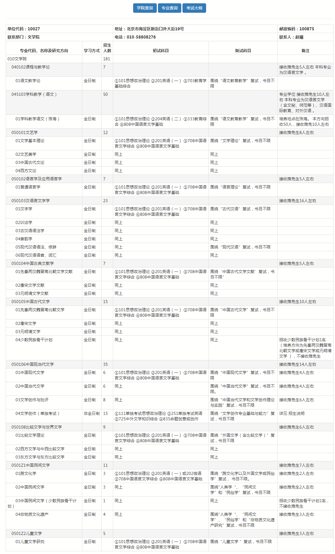 北师大考研辅导班:2022年北京师范大学文学院硕士研究生招生专业、招生人数、考试科目公布
