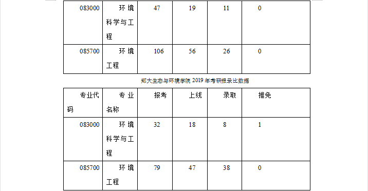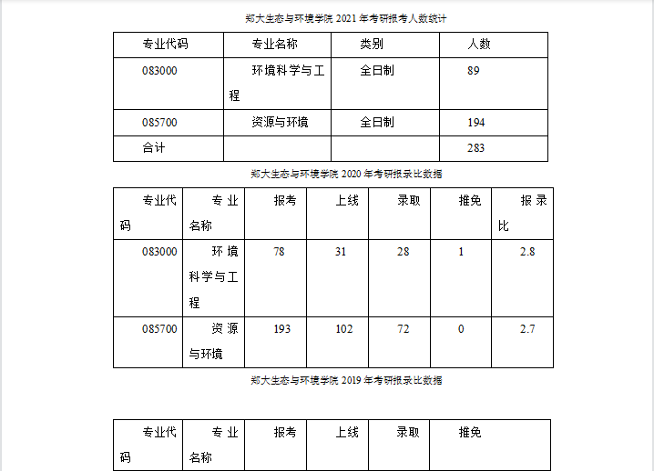 其次关于郑大生态与环境学院近几年报考人数和报考人数统计如下: