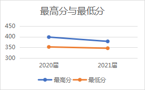 (2)从最高分和最低分可以看出,2021年较去年下降,而且每次的最低分与国家线的差额都不超过10分。