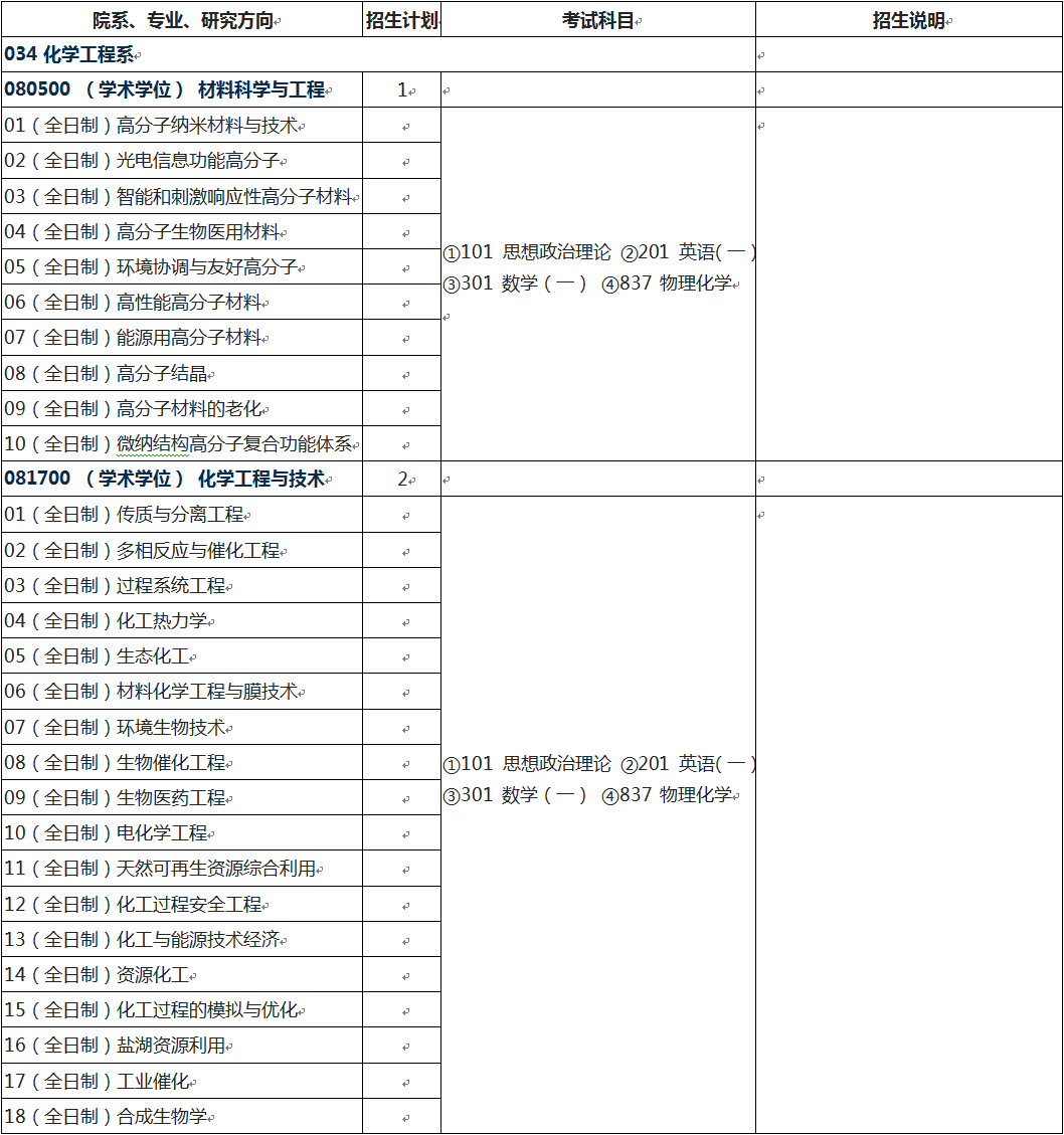 2022年清华大学化学工程系硕士研究生招生专业目录、考试科目、招生人数