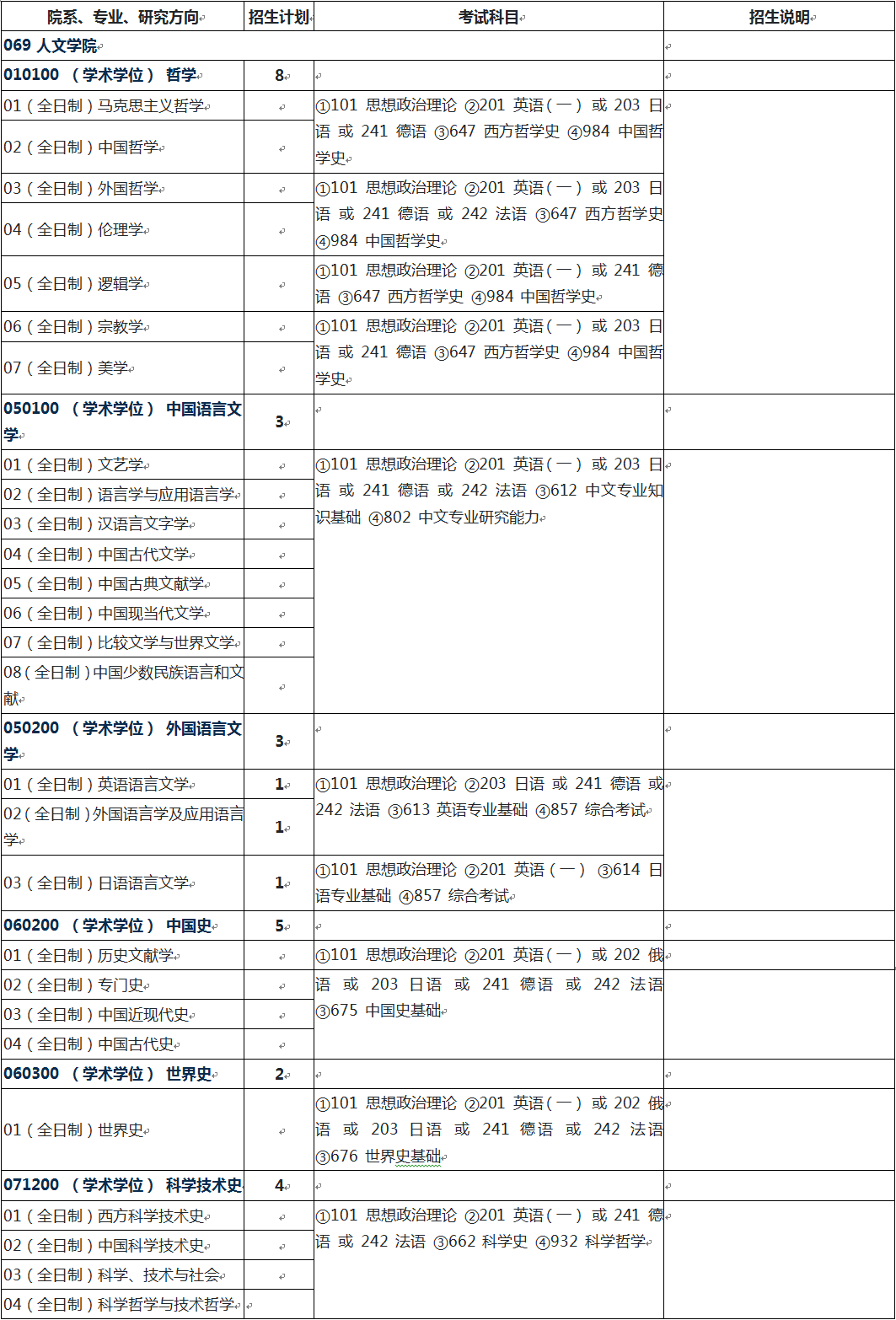 2022年清华大学人文学院硕士研究生招生专业目录、考试科目、招生人数