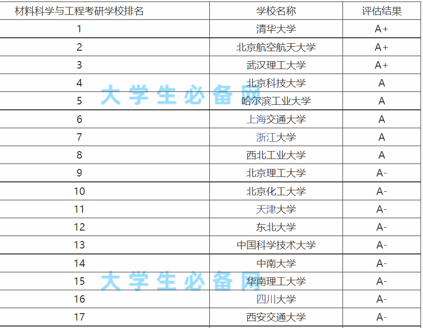 2.院校选择。由于在本科期间学习过部分焊接方向课程,因此对焊接有部分的了解,同时焊接为哈工大的王牌专业之一,因此确定考研专业为焊接专业。院校选择时应考虑两点:(1)是否有向往的城市,例如北上广深;(2)是否有向往的高校。我在选择院校时,一个好的院校是第一位的,若能考上985,城市可以放到第二位,毕竟研究生只有两三年的时间。因此,在选择院校时,优先冲击985院校,在参考过材料专业高校排行榜之后,选择哈工大。(图片排名仅作参考)