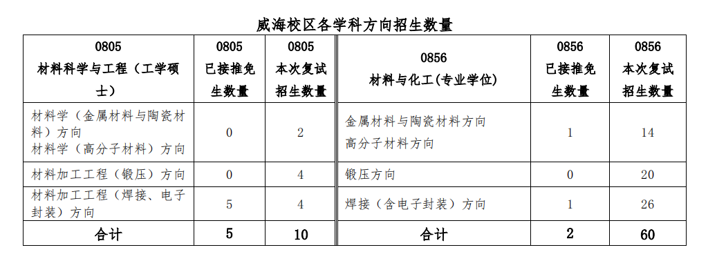 哈工大三校分开招生,哈尔滨校区、深圳校区、威海校区(考研报名时选定方向报名),并且各校区侧重点不同,哈尔滨校区焊接侧重于航空航天方向,且招收人数最多。深圳校区焊接专业侧重于电子封装,并且近几年在扩招,是考研热门。威海校区焊接专业侧重于海洋特种合金焊接,并且威海校区常年招不满,每年都有不少考生报考本部调剂到威海,因此威海校区报考难度相对小一些。下图为2020年考研情况: