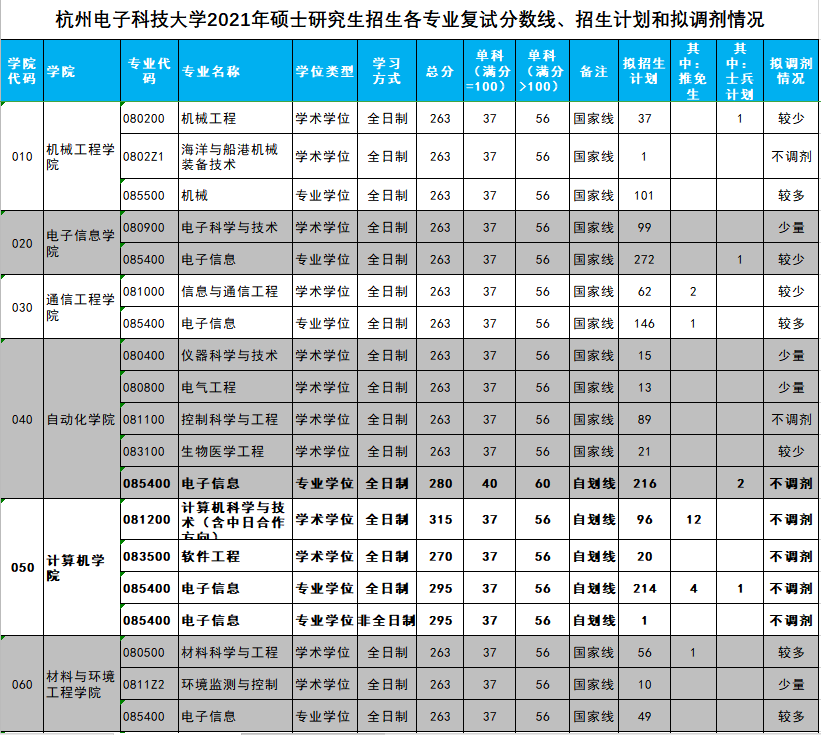 2022杭州电子科技大学考研辅导班:杭州电子科技大学考研各专业复试线、招生计划