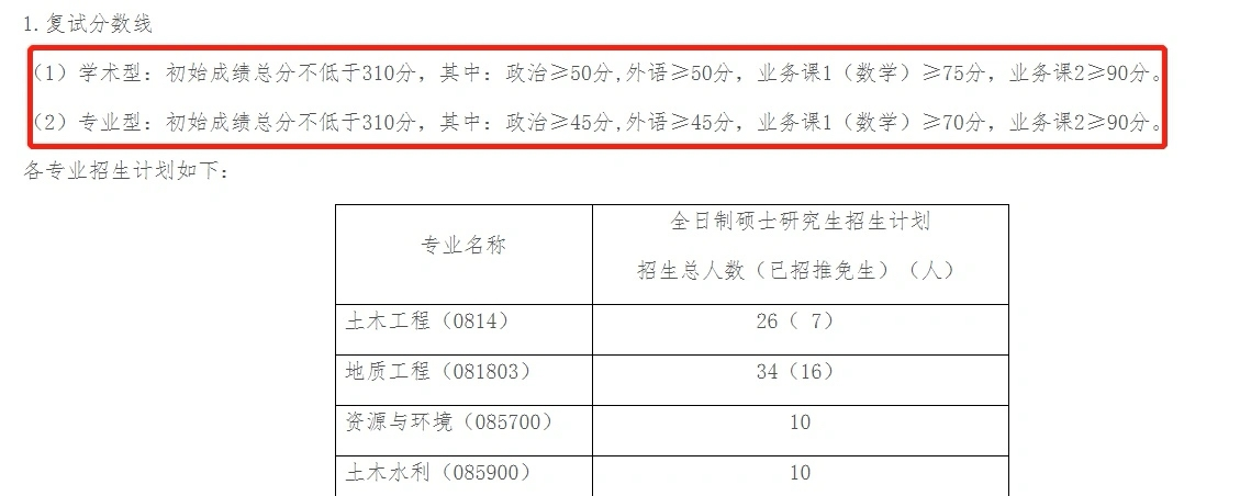吉林大学土木工程专业学硕和专硕分数线每年都是相同的,2019和2020年总分数线是310分,2021年是300分。