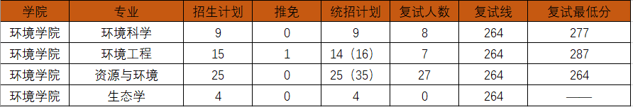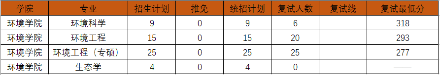 备注:2021年为等额复试,复试时资源与环境专业扩招