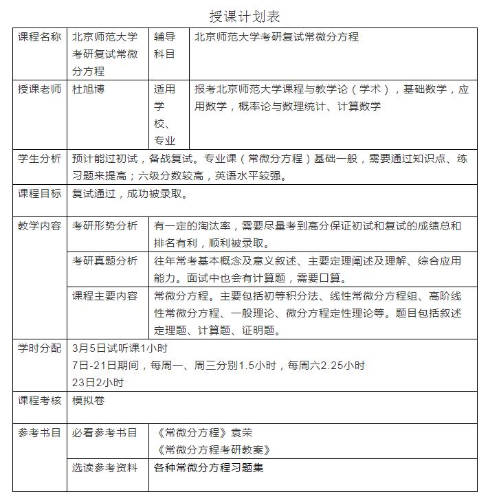 新祥旭考研:2023年北京师范大学常微分方程授课计划