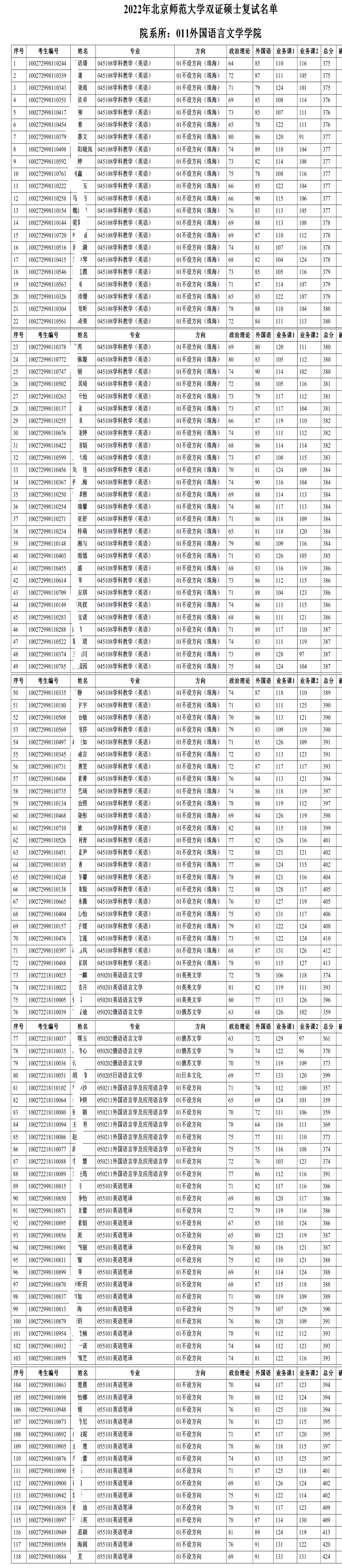 北师大考研辅导班:2022年北京师范大学外国语言文学学院硕士研究生招生复试名单公布