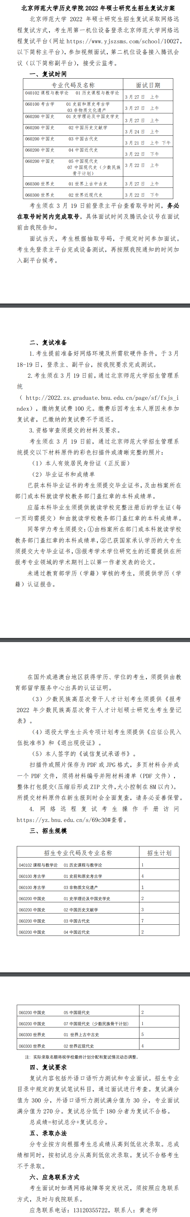 北师大考研辅导班:2022年北京师范大学历史学院考研复试及调剂方案细则