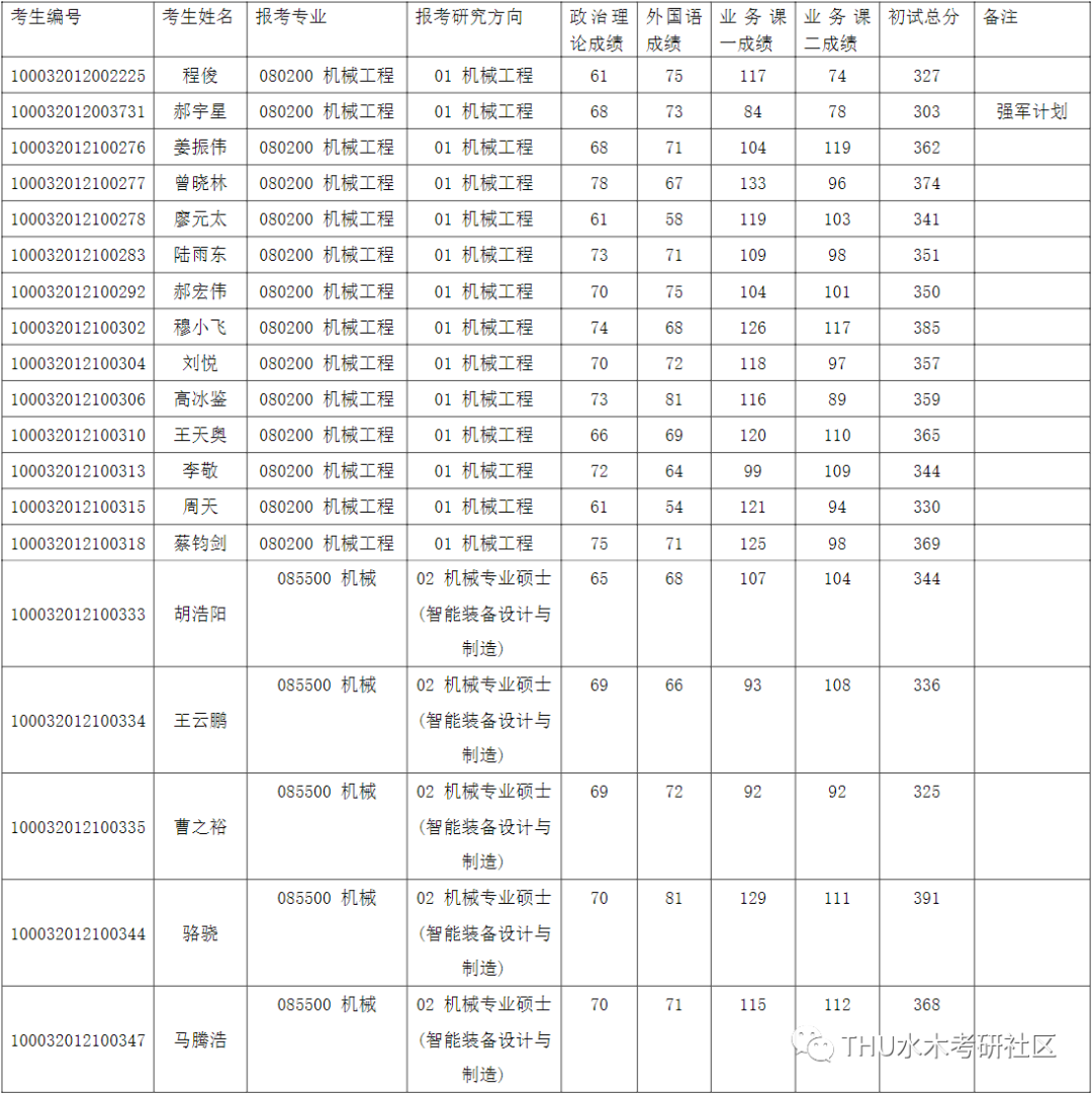 清华大学2022年机械工程系全国硕士研究生招生考试入围复试名单公示