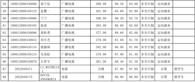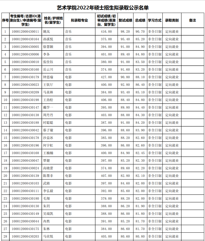 北京大学艺术学院2022年硕士招生拟录取公示名单