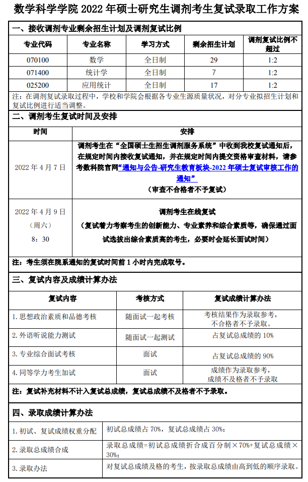 首师大考研辅导班:2022年首都师范大学数学科学学院考研复试调剂名额、复试时间等方案细则!