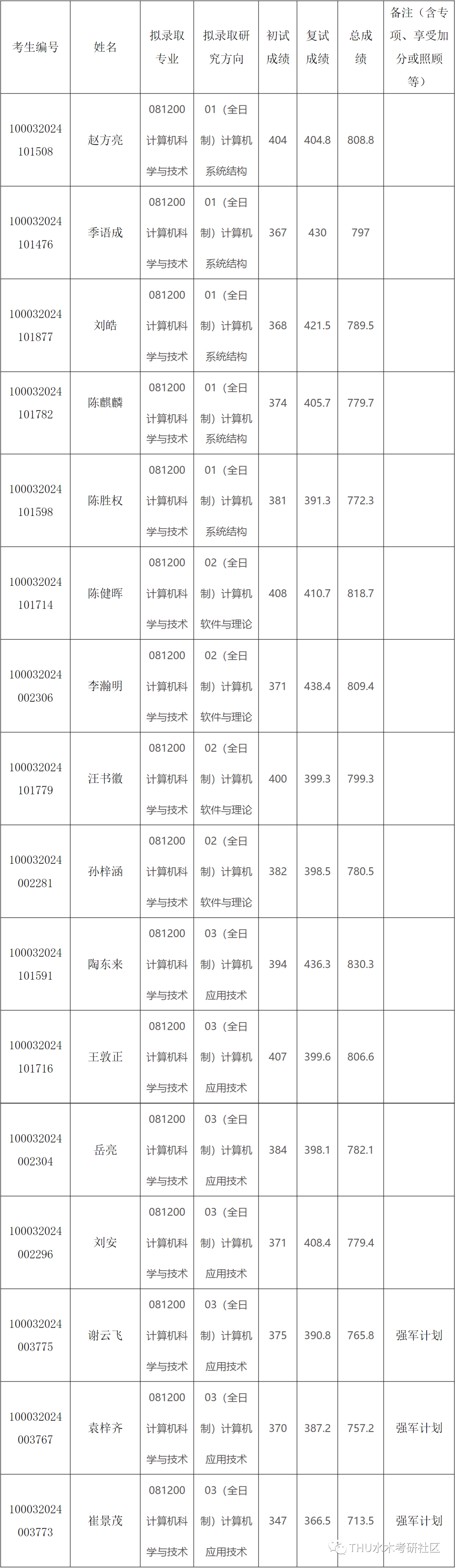 清华大学2022年计算机科学与技术系硕士研究生拟录取名单公示 经综合考核和研究生招生工作领导小组讨论,报学校研究生招生工作领导小组批准,清华大学计算机科学与技术系2022年硕士研究生拟录取名单已确定,现予以公示。