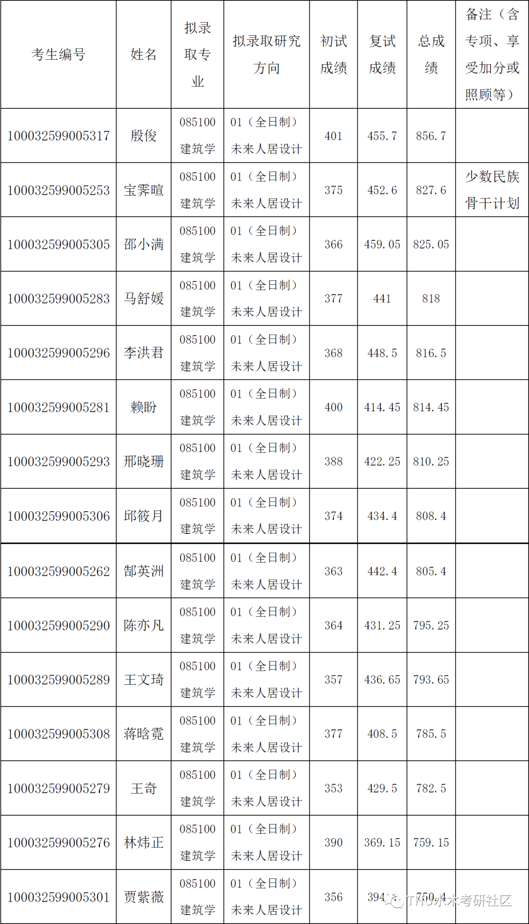 经综合考核和研究生招生工作领导小组讨论,报学校研究生招生工作领导小组批准,清华大学深圳国际研究生院2022年硕士研究生建筑学(未来人居设计)项目拟录取名单已确定,现予以公示。