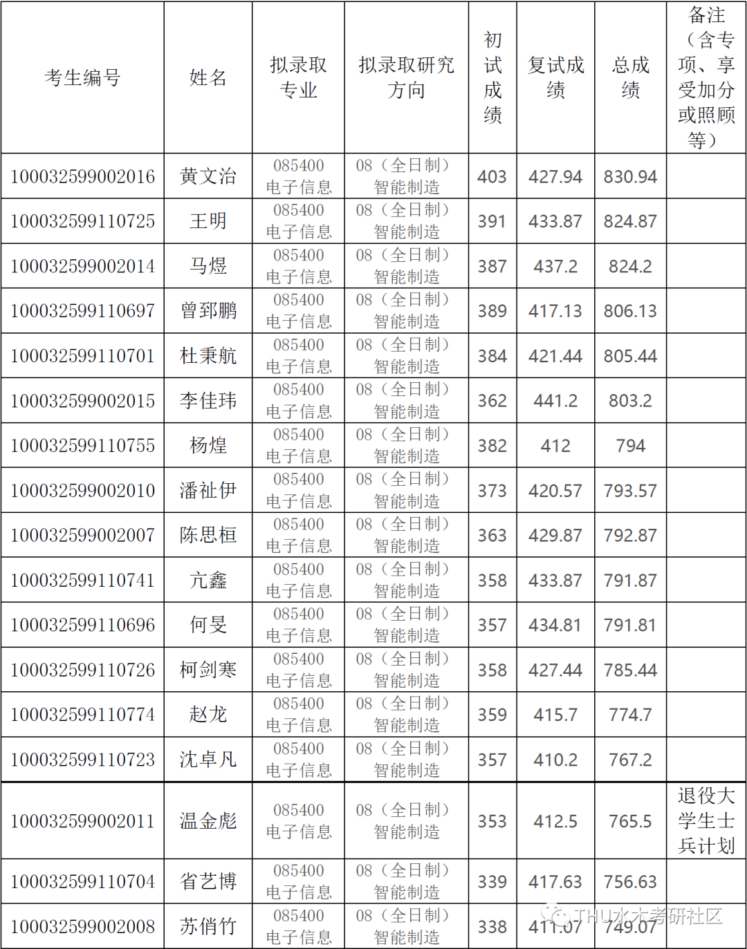 清华大学2022年深研院电子信息(智能制造)硕士研究生拟录取名单公示