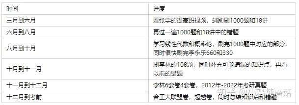 英语从3月份就可以开始了,每天都要背单词,可以用墨墨背单词app,按照艾宾浩斯遗忘曲线背诵,不熟悉的单词做好标记。阅读直接做真题就可以,每天可以做真题中的一道阅读,前期一定要认真做,不会的单词都要搞懂意思,做题的速度不必过快,语法和长难句可以看田静的视频课。英语学习每天早上7点半左右开始,每月复习的流程不会有太大变化。到十一月一定要保证单词过2遍,真题做过的都完全掌握,时间来不及的话不用刷完真题,开始看唐静的翻译课以及石磊鹏或者刘晓燕的作文课,找到属于自己的写作模板。